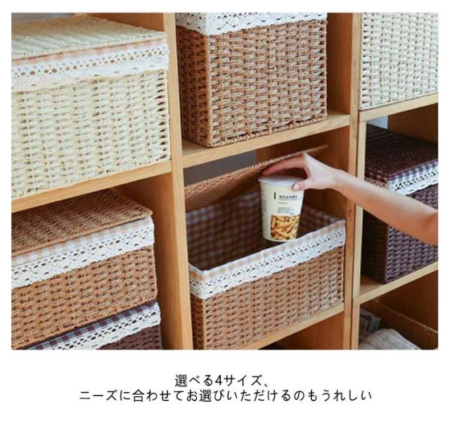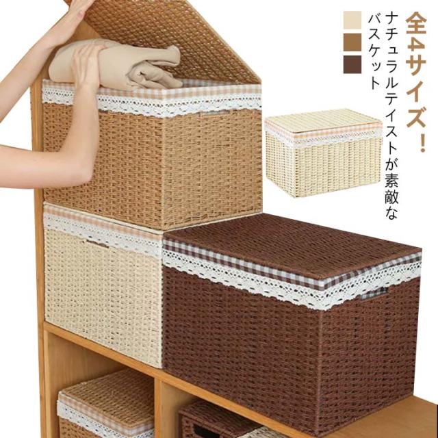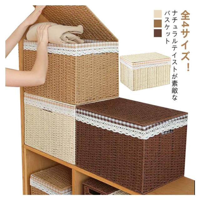 | 全4サイズ!ナチュラルテイストが素敵なバスケット 日常のインテリア収納をオシャレにかわいく。 内布付きなのでタオル等、中の物がカゴに引っかかったり、傷ついたりせず収納できます。 精巧な取っ手付きで、簡単に持ち運ぶことができます。 インテリア収納として、おもちゃ箱として、工夫次第でいろんな使い方ができます。 選べる4サイズ、ニーズに合わせてお選びいただけるのもうれしい♪ | |