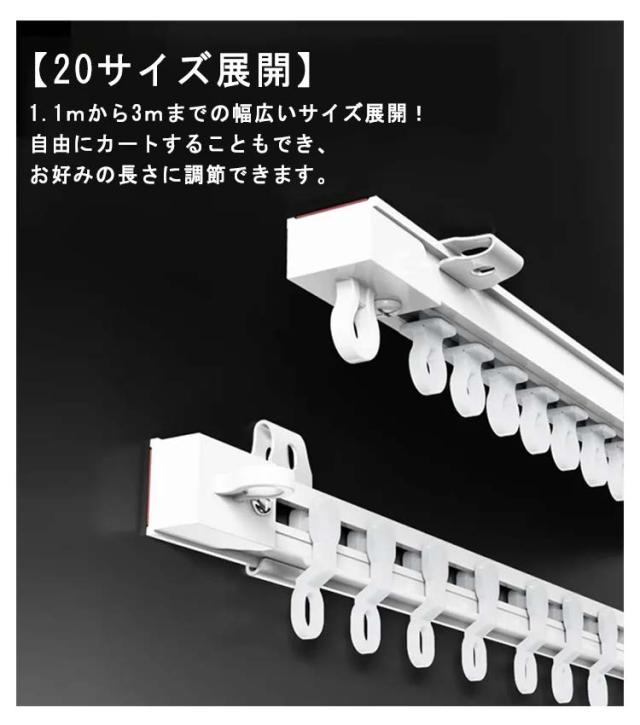 穴あけ不要 粘着式 カーテンレール 頑丈 静音タイプ 耐荷重5kg 貼り付け 正面付け 天井付け 1.1m 2m 3m カット自在 長さ調整 間仕切り 両面テープ 取付簡単 ネジ打ち不要 開閉簡単 シンプル 賃貸