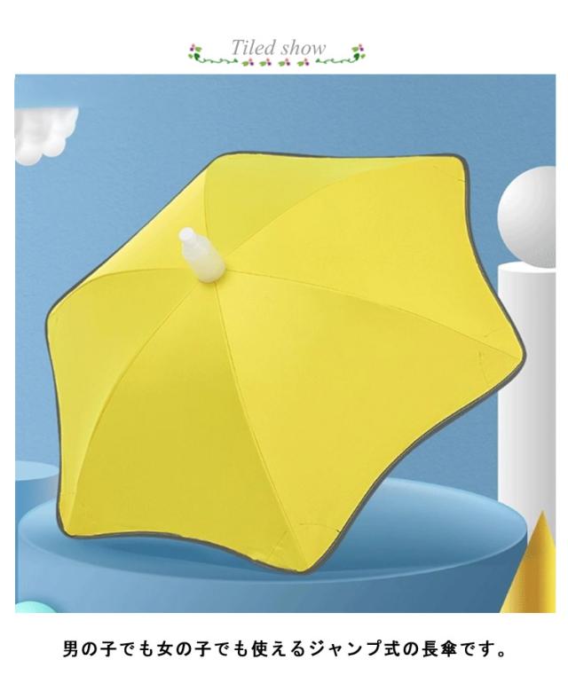 | 可愛らしいキッズ用ジャンプ傘が登場! 男の子でも女の子でも使えるジャンプ式の長傘です。 カバー付きで、先端のキャップを外して溜まった水を排出できて周りのものや衣服を濡らさないです。 日傘としてだけではなくて、会社や学校の「置き傘」として、突然の雨のときにも利用できます。 | |