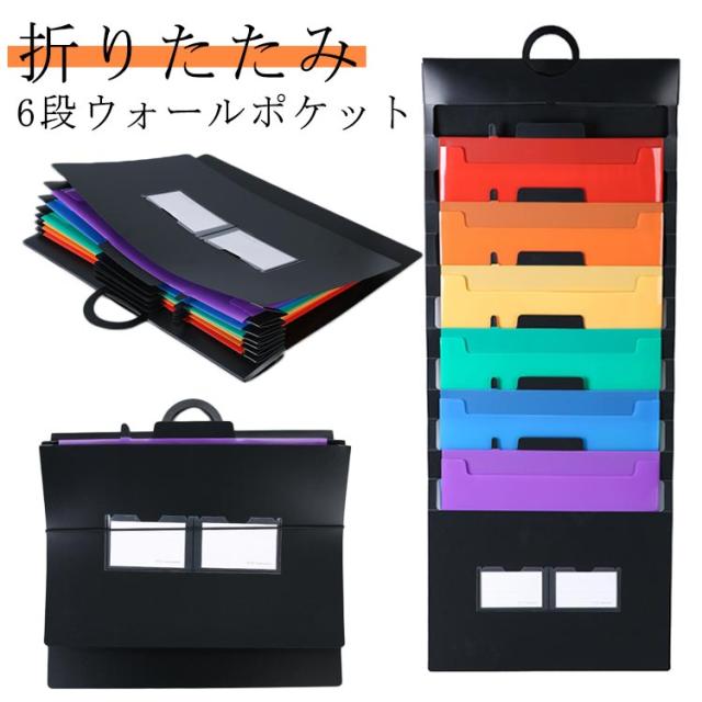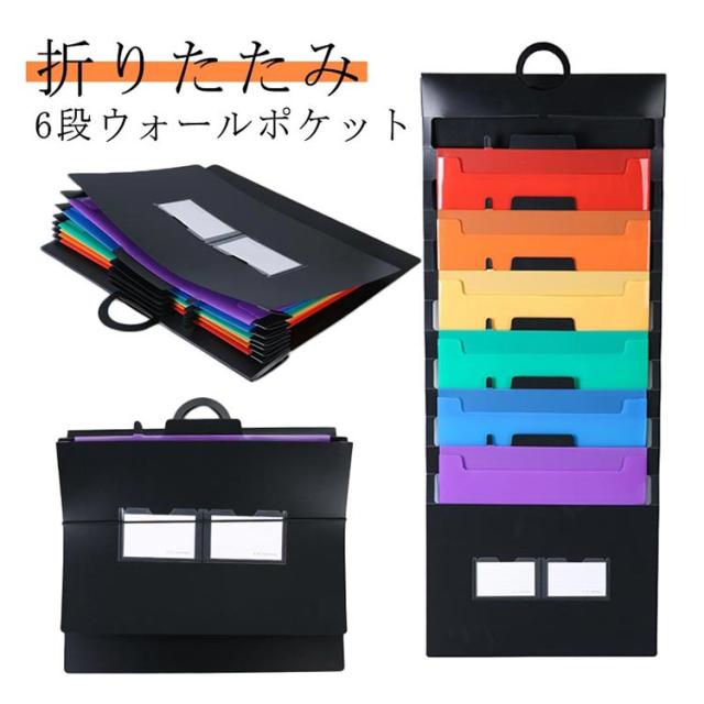 6段 ウォールポケット 2個セット A4ファイルケース 壁掛け たためる 2wayファイル 折りたたみ 6ポケット 防水 仕切り 縦型 業務用 家庭 文具インテリア 収納 書類 保育園 幼稚園 学校 便利 クローゼット テレワーク 洗面所 入学 就職祝 プレゼント