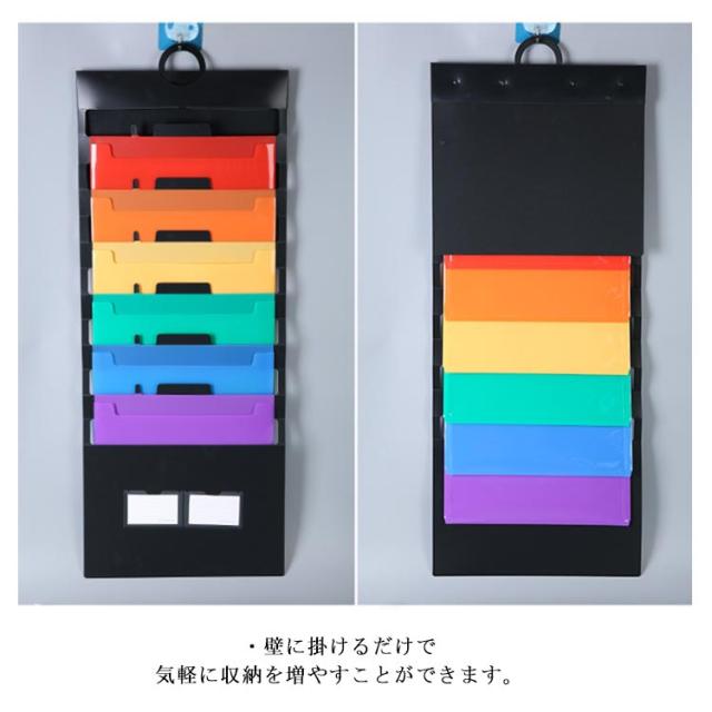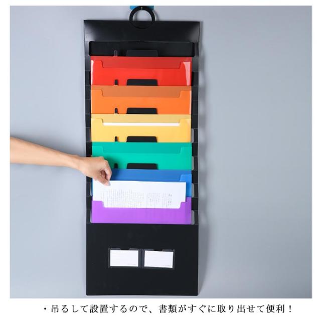 | ・書類やプリントの出し入れがしやすく、省スペースで使える壁掛けポケット。 ・吊るして設置するので、書類がすぐに取り出せて便利! ・たためばブリーフケースとして持ち運べます。 ・書類をパッと一目で見やすく管理するために、色別の仕切り付きファイルケースです。 ・壁に掛けるだけで気軽に収納を増やすことができます。 ・職場での情報伝達や整理整頓に最適です。 | |