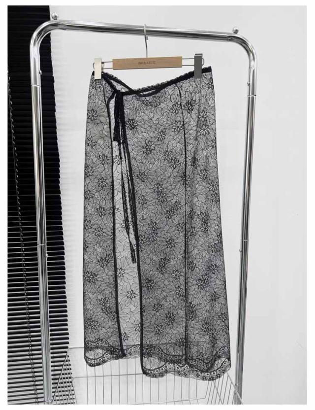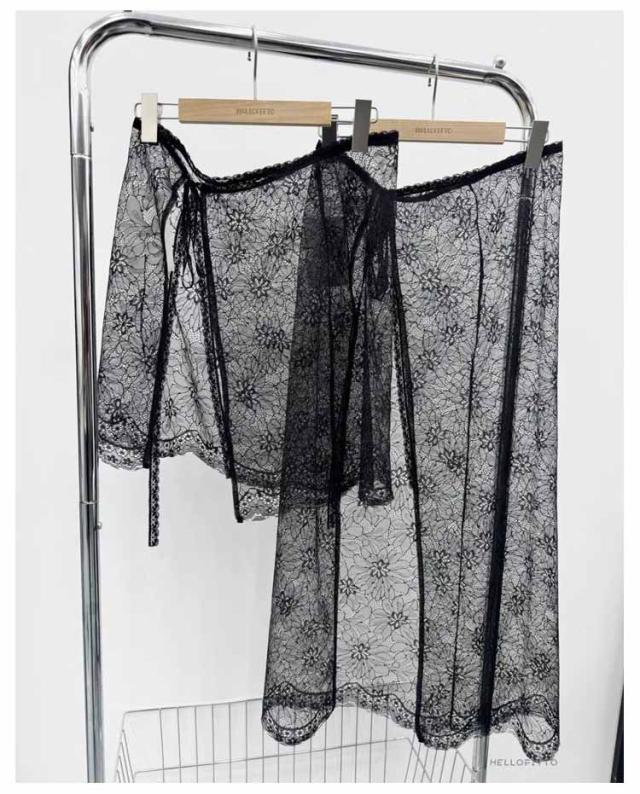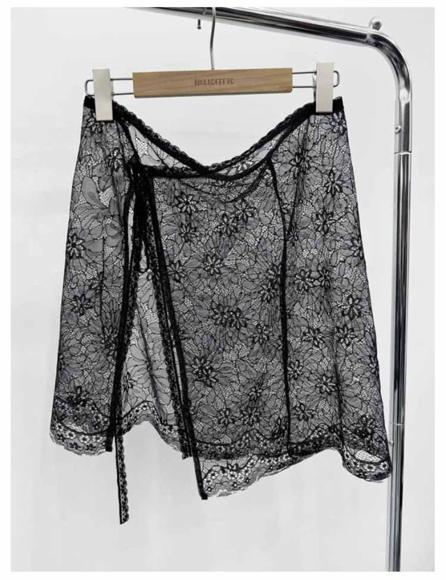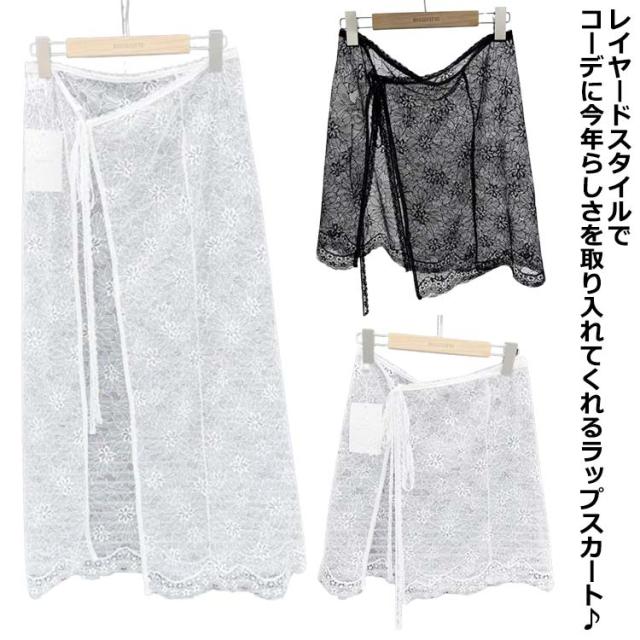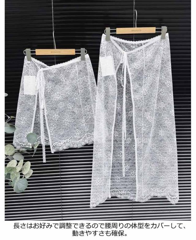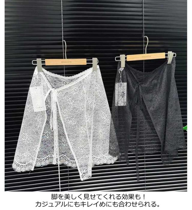 レース巻きスカート チュール フリル カラー レディース 付け裾 肌見せ 総レース レーススカート 薄手 シースルー 花柄 体型カバー ラップスカート ズボンの上 ボトムス ふんわり 重ね着 春 夏 レース お洒落 大人可愛い 韓国ファッション