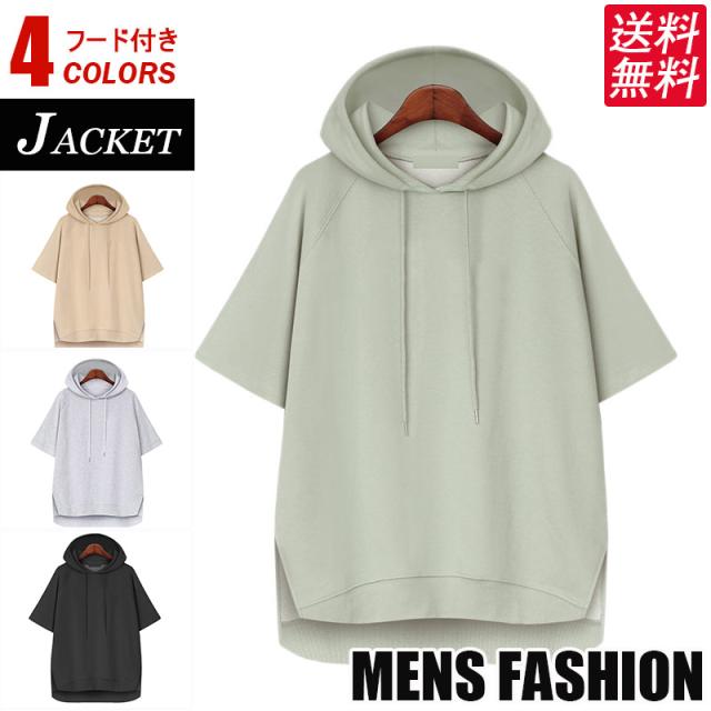 パーカー メンズ フード付き 半袖 半袖パーカー プルオーバ シンプル ゆったり カジュアル 大きいサイズ レイヤード 小さいサイズ 通学 男の子 夏