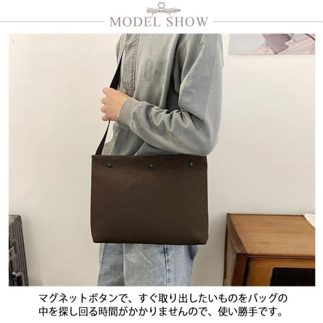| カジュアルなメンズショルダーバッグ。 マグネットボタンで、すぐ取り出したいものをバッグの中を探し回る時間がかかりませんので、使い勝手です。 ショルダーベルトは長さを調節可能なので、肩掛け、斜めがけとして使用できます。 シンプルなデザインなのでどんなスタイルにも合わせられます。 | |