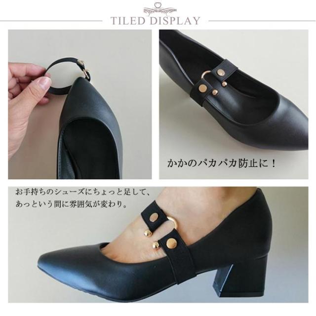 | 【2ペアセット】 かかのパカパカ防止に!パンプス用ストラップ。 お手持ちのシューズにちょっと足して、あっという間に雰囲気が変わり。 幅広いゴムで、痛くない快適。 U型メタルがアクセントに、おしゃれ度アップ。 カカトのパカパカ脱げにもバッチリ! 普段使いはもちろん、デートや結婚式など色々な場面で大活躍。 | |
