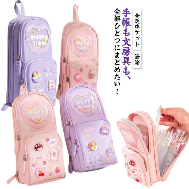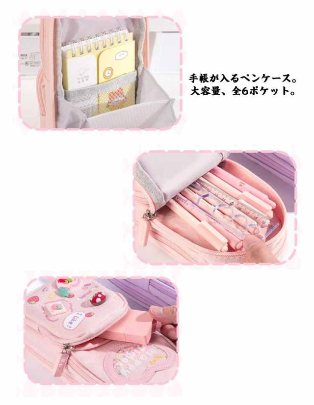 | 手帳も文房具も、全部ひとつにまとめたい! 学校やカフェやオフィスで、いつでもお気に入りの文房具を使いたい! 全6ポケットでたくさんのペンや手帳用やハサミなど収納できます。 手帳が入るペンケース。大容量、全6ポケット。 大切な手帳も、お気に入りの文房具も、可愛く持ち運べて立てられる! | |