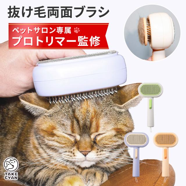 【ペットサロントリマー監修】 ペット用両面ブラシ「ワンプッシュ式!」犬猫ブラシ 抜け毛取り+クリーナー ブラシ ブラッシングブラシ 犬用ブラシ マッサージ スリッカーブラシ 毛玉取りブラシ 丸洗い可能 皮膚に優しい 犬猫通用 中毛 長毛 種向け