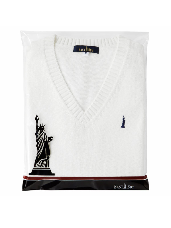 EASTBOY イーストボーイ Venus 綿ベスト7G 通学 高校生 ●「自由の女神」のワンポイントが象徴的な定番ニット。一年を通して着用できるコットンアクリル素材