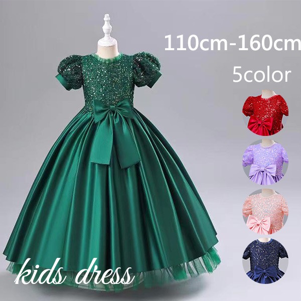 ピアノ発表会 ドレス 中学生 ワンピース 女の子 キッズドレス リボン付き ロング丈 ガール 子供ドレス 半袖 リボン 演奏会 フラワーガール ベールガール リングガール プリンセスドレス ブライダル フォーマル 七五三 可愛い お姫様 110 120 130 140 150 160 dd023l9l9lc