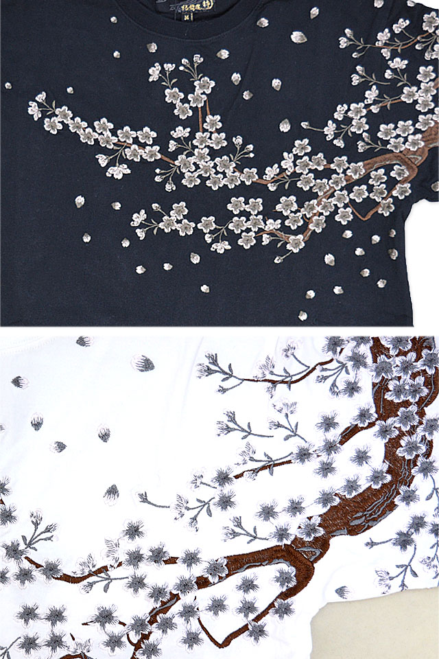 身頃から袖にかけて、枝垂れ桜が刺繍で描かれています。