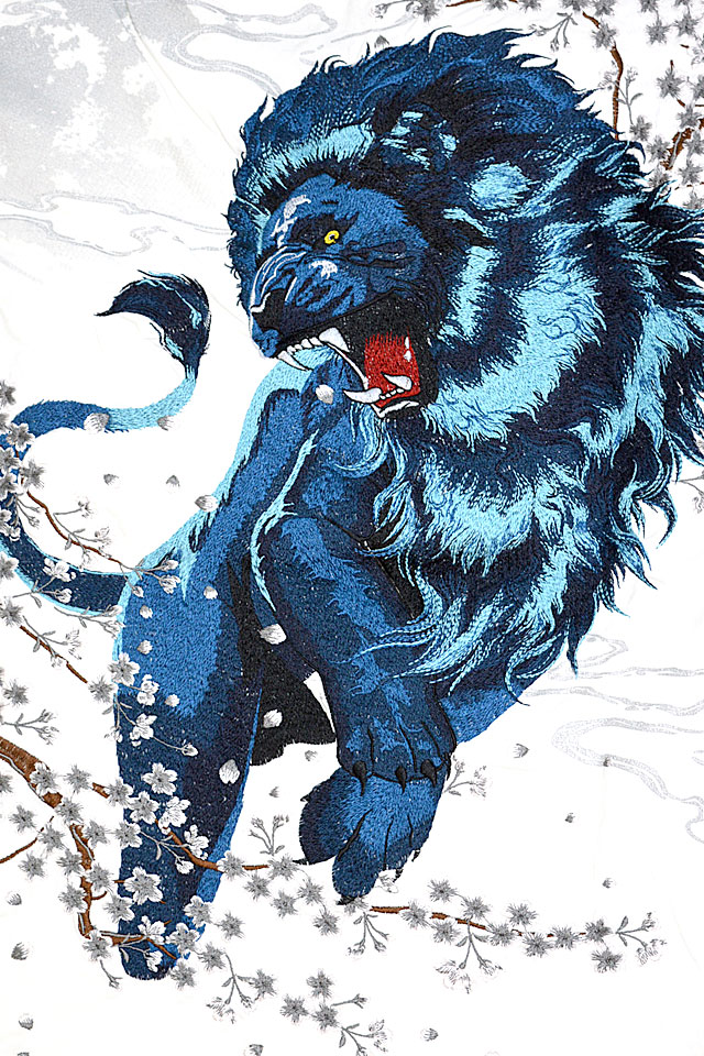 背中には咆哮するライオンの姿をダイナミックに落とし込みました。