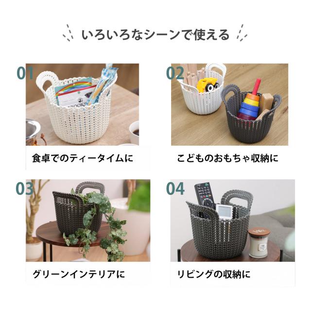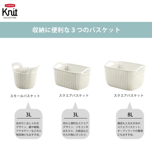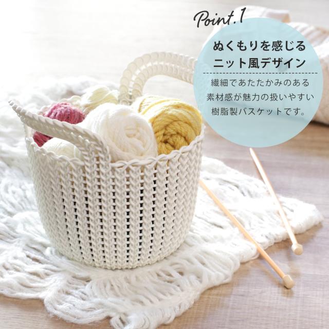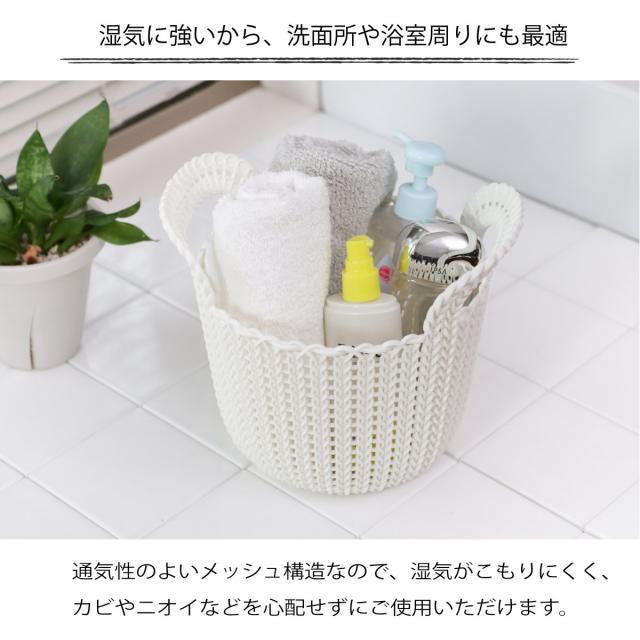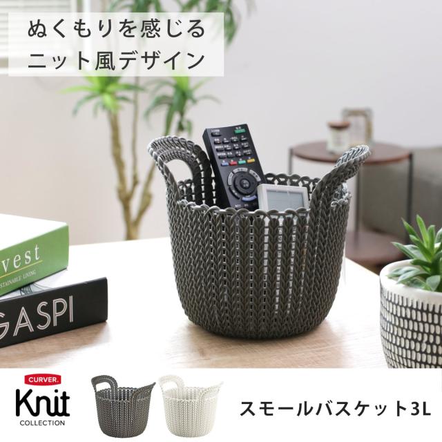 バスケット スモールバスケット CURVER ニット ランドリーボックス 3L ( カーバー かご 持ち手付 小物入れ スモール 収納 おもちゃ タオル 水回り 脱衣所 シンプル 軽量 ニット模様 )