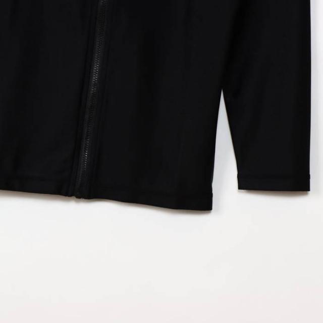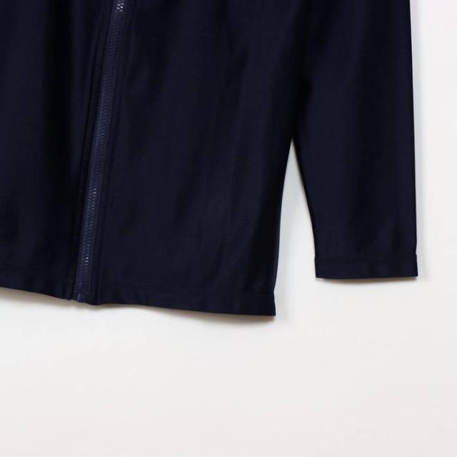 伸縮性に優れたポリエステル85%、ポリウレタン15%のストレッチトリコット素材を使用した、身体にフィットして動きやすいラッシュガードです。UVカット機能付きで、プールの塩素による劣化を防止できます。