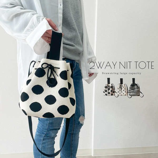 シンプルデザインのコンパクトな2way巾着バッグ。