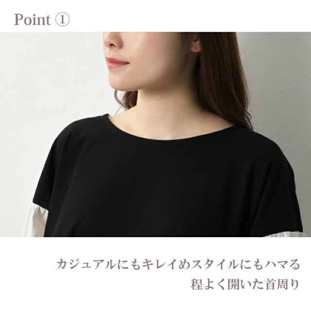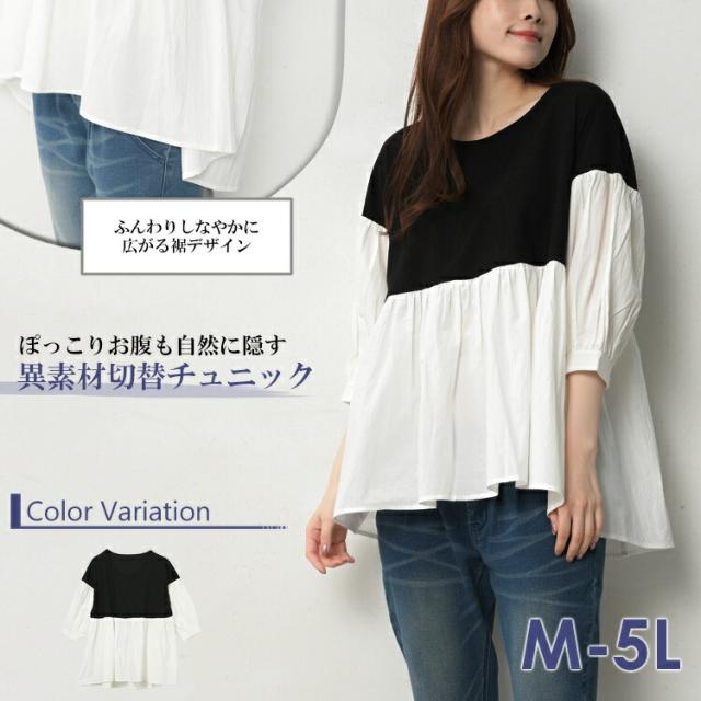 【メール便対応】ぽっこりお腹も自然に隠す異素材切替チュニック。