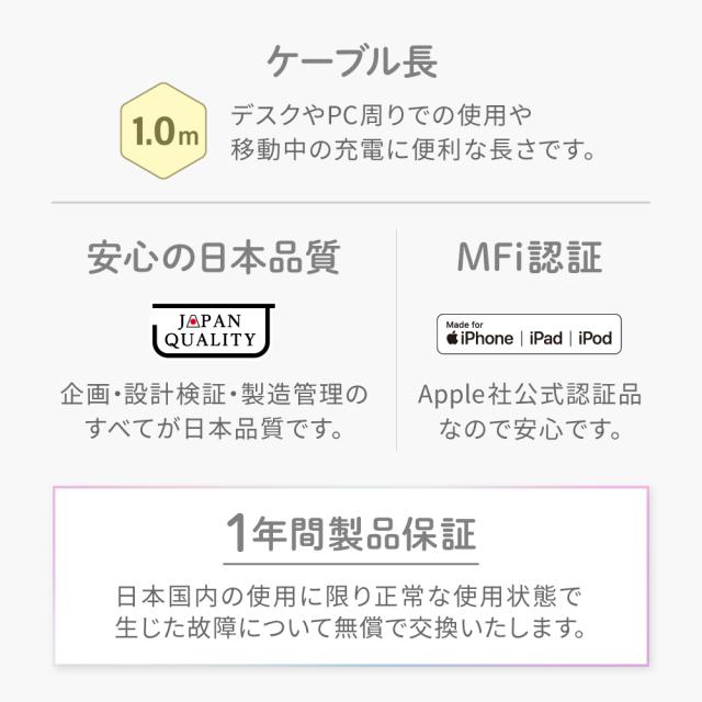 USB Type-A to Lightningケーブル 1m きらきら可愛い オーロラカラー 急速充電2.4A/データ転送