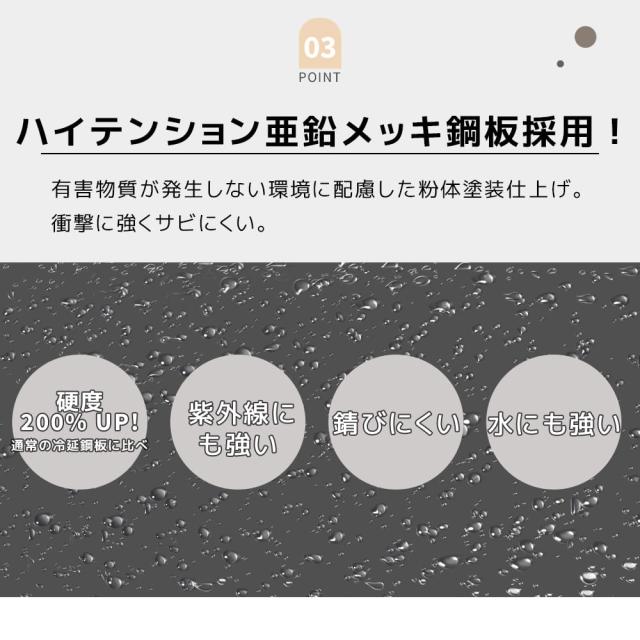 【金属の頑丈な安定感スチール素材】素材は、スチール板を採用、紫外線にも強く錆びにくいです。水にも強い仕様です