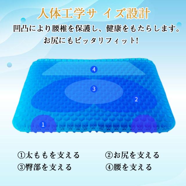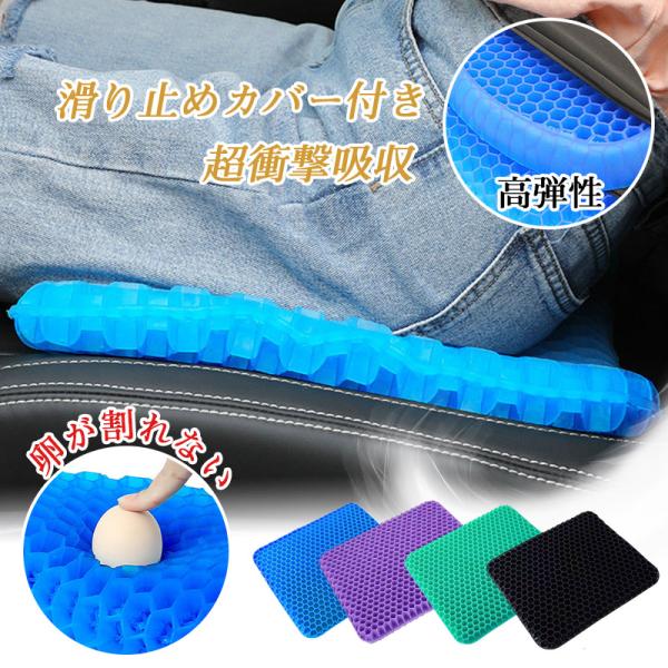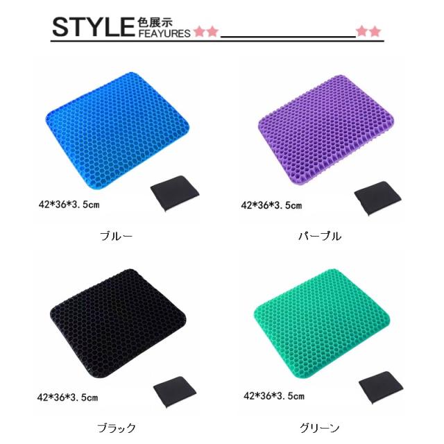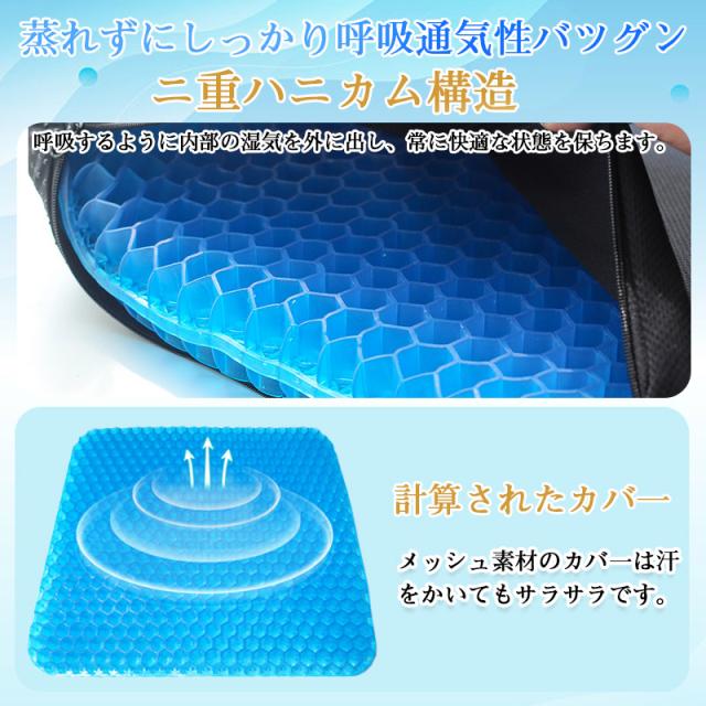 極厚 ハニカム 座布団 ゲル クッション ジェル 厚み1.5倍 滑り止めカバー付 超衝撃吸収 高弾性 シート 車用 オフィス 腰痛対策