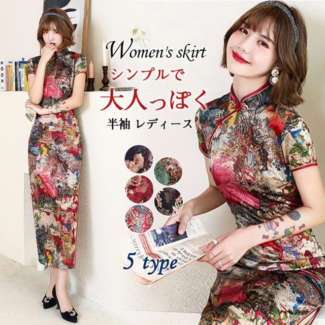 チャイナドレス ロング丈 チャイナ服 上品 優雅 セクシー コスプレ コスチューム 衣装 スリット レディース パーティ イベント 仮装 花柄