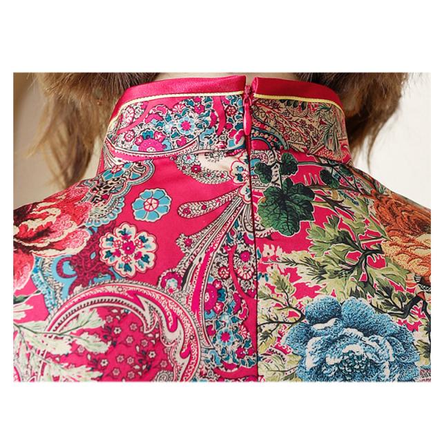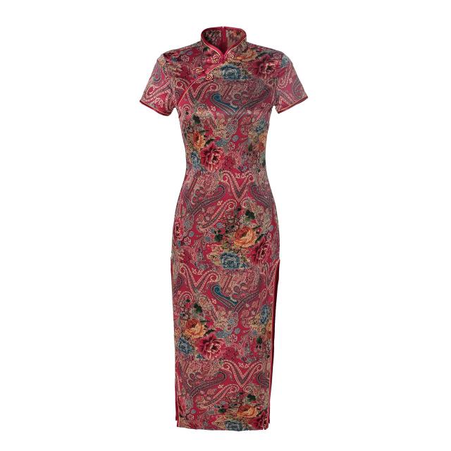 ロング丈のチャイナドレスは、全体的に優雅で上品な印象を与えます。