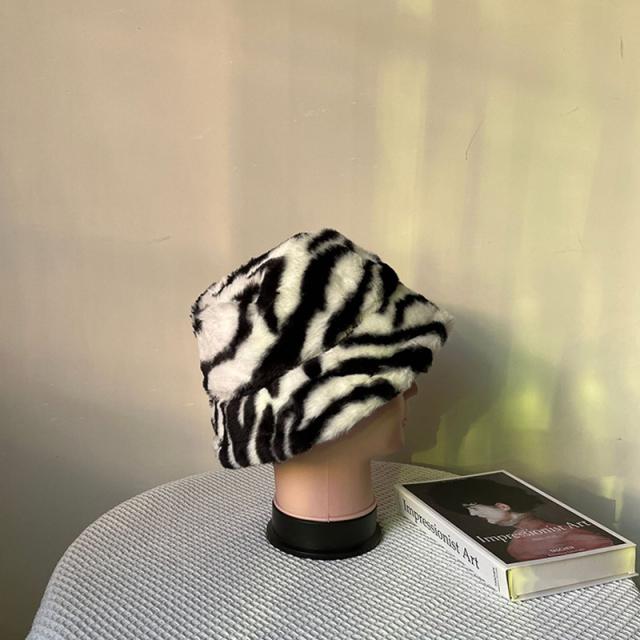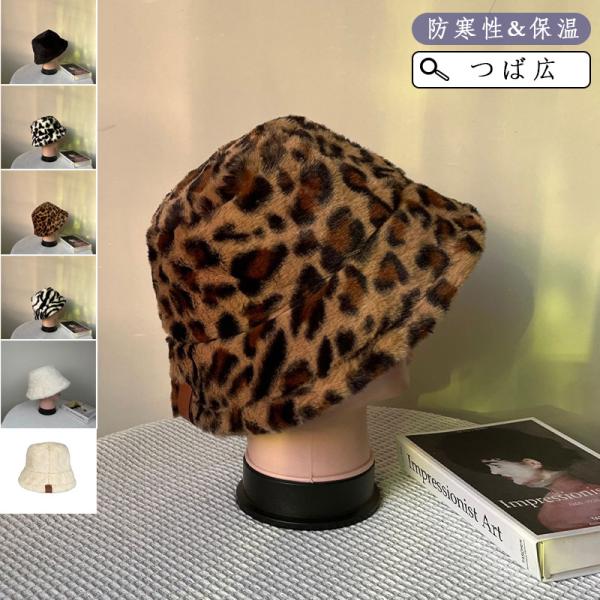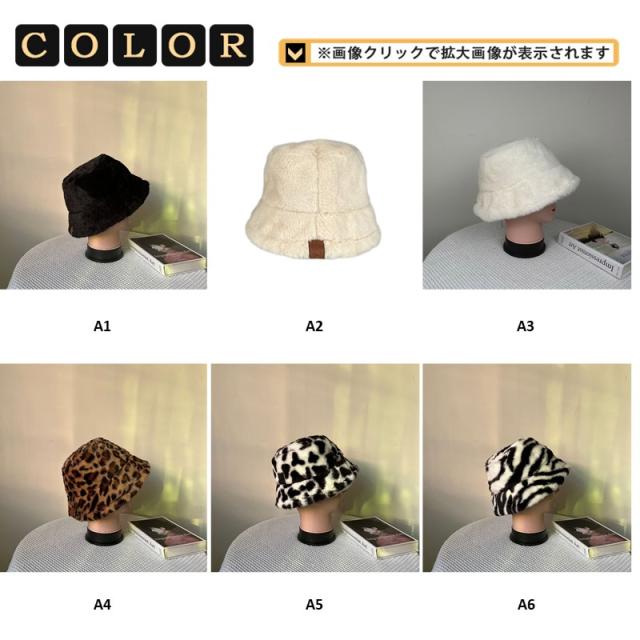 バケットハット レディース ファー フェイクファー 帽子 無地 ゼブラ柄 ヒョウ柄 ブラック ベージュ あったか もこもこ ボリューム 福袋
