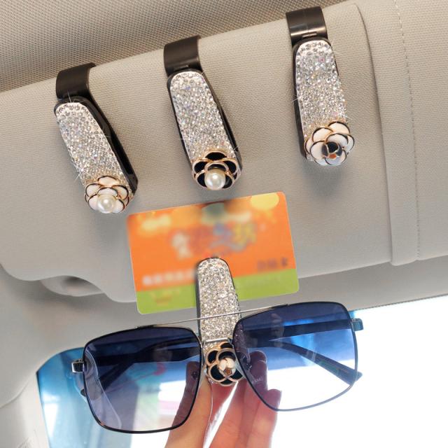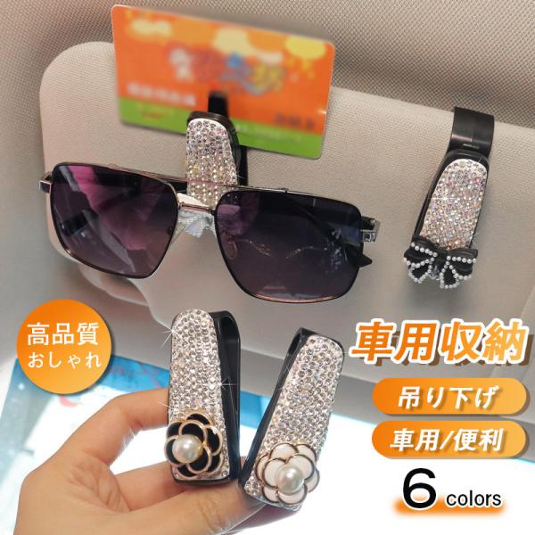 サングラスクリップ 車 メガネホルダー 車用 サンバイザー用 メガネクリップ カードホルダー ピカピカ 車収納 可愛い 花形 おしゃれ 便利
