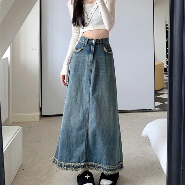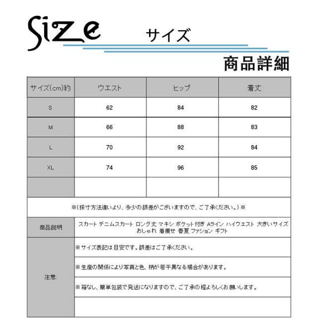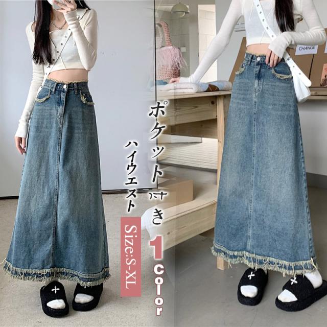 スカート デニムスカート ロング丈 マキシ ポケット付き Aライン ハイウエスト 大きいサイズ おしゃれ 着痩せ 春夏 ファション ギフト