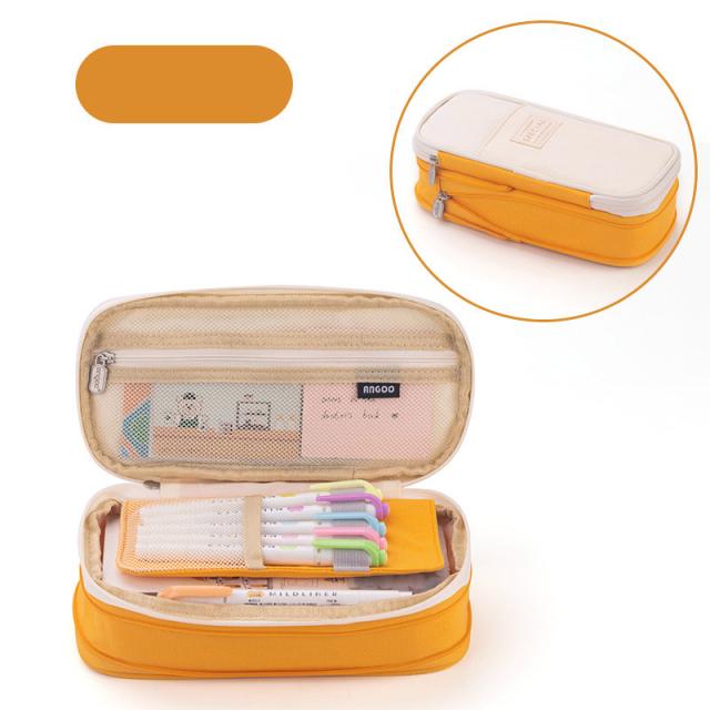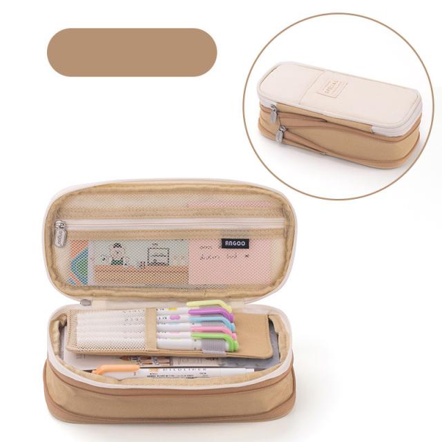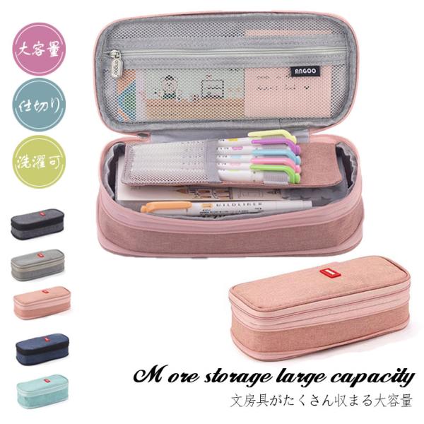 筆箱 小学校 中学 女子 シンプル 大容量 仕切り 使いやすい 無地 チャック ペンケース 洗濯可