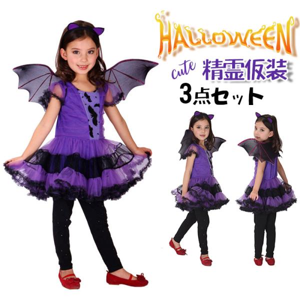 ハロウィン コスプレ 衣装 子供 クリスマス キッズ 女の子 魔女 精霊 仮装 可愛い ワンピース デビル コスチューム コウモリ ハロウィーン ダンス衣装