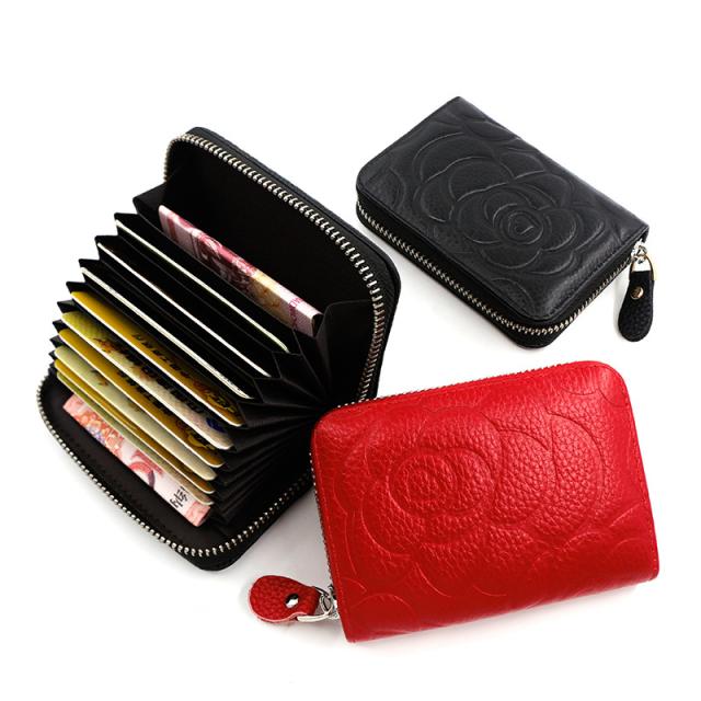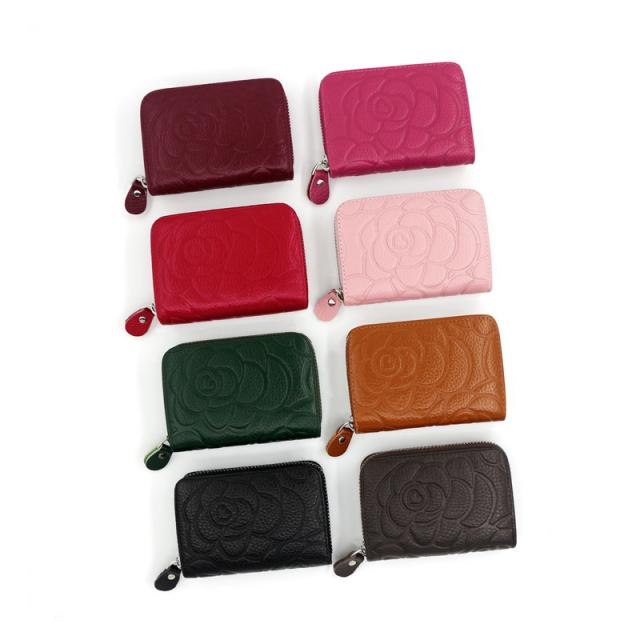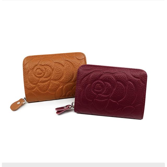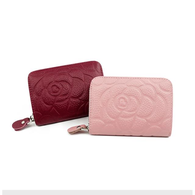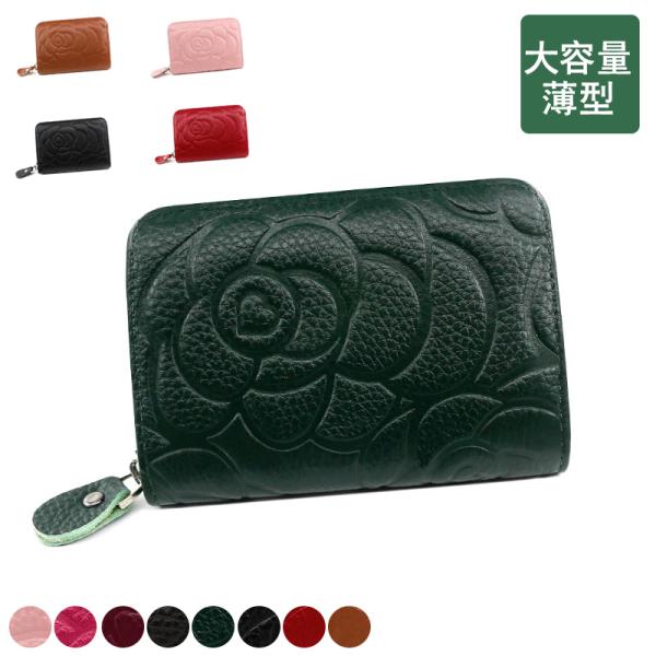 牛革 バラ柄 カードケース カード入れ レディース メンズ 財布 ミニ財布 カードフォルダー 薄型 大容量 二つ折り パスケース IDカード 本革