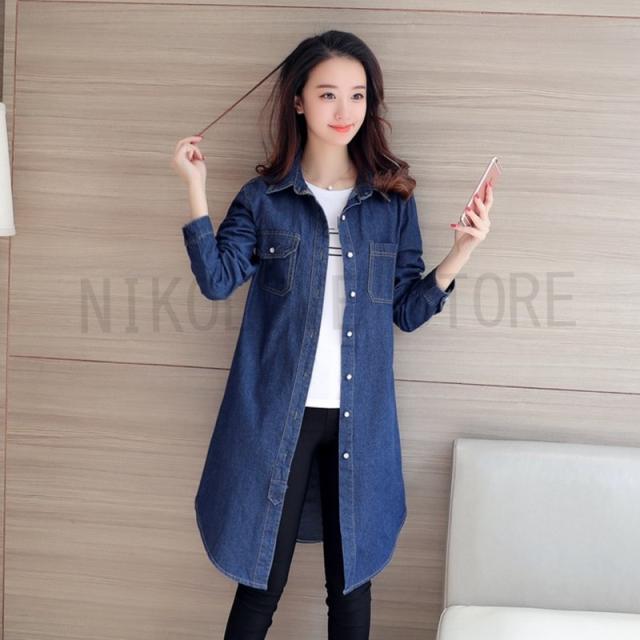 セール シャツ ロング丈 デニムシャツ ジャケット ロングシャツ デニム S-3XL 大きいサイズ 前開き 長袖 体型カバー 無地 デニムワンピース 送料無料