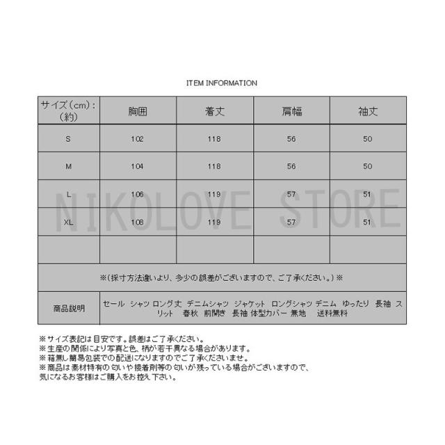 セール シャツ ロング丈 デニムシャツ ジャケット ロングシャツ デニム ゆったり 長袖 スリット 春秋 前開き 長袖 体型カバー 無地 送料無料