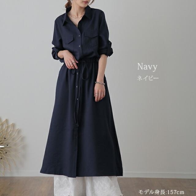 ロングワンピースシャツワンピース ワンピ ロングマキシワンピース レディース 長袖 大きいサイズ 黒 ベージュ きれいめ 春 夏