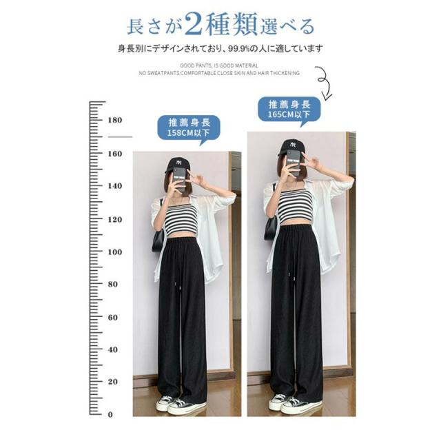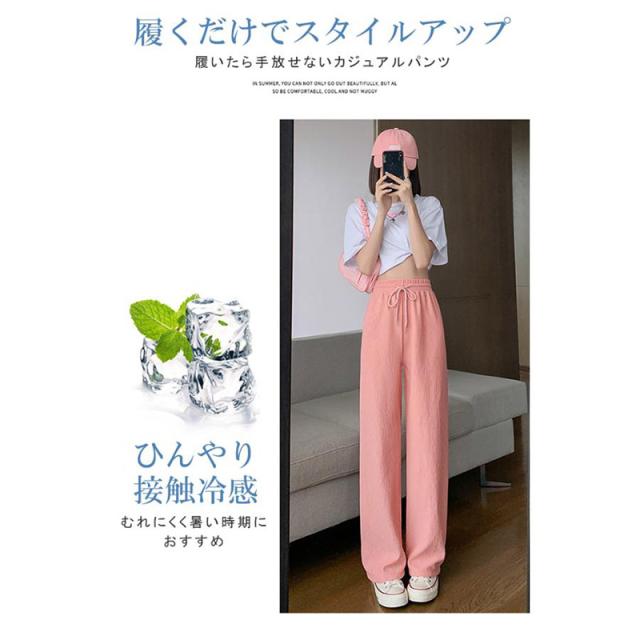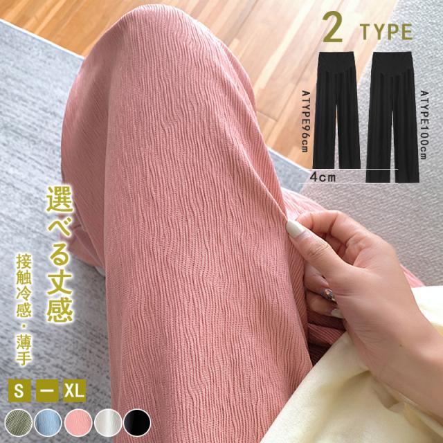 カジュアルパンツ ワイドパンツ 選べる丈感 プリーツパンツ 接触冷感 ひんやり 涼しい 一部即納 送料無料 涼しい 夏 パンツ 新品 ギフト