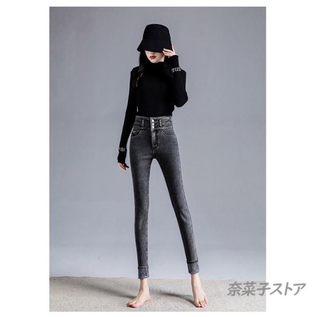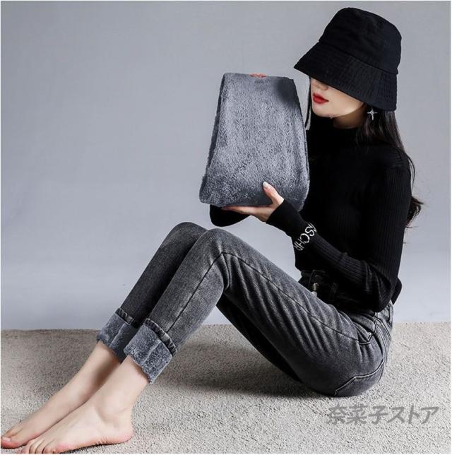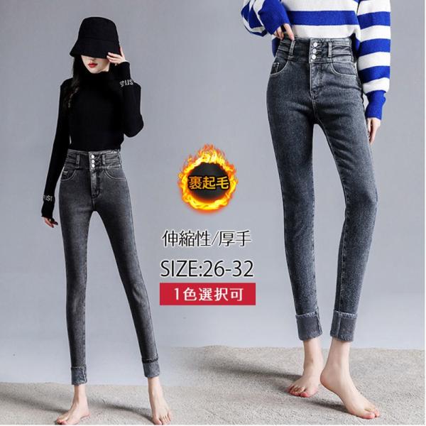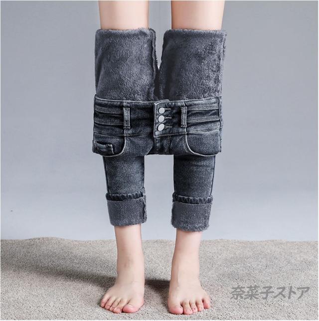 デニム ボトムス レディース 裏起毛 パンツ 暖パン スキニー ストレッチ 着痩せ 防寒 大人 あったか デニム ハイウエスト ジーンズ 厚手