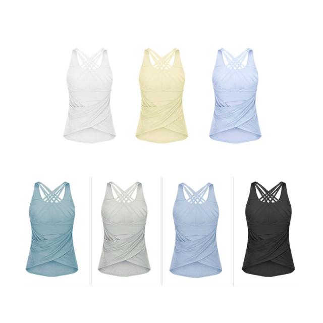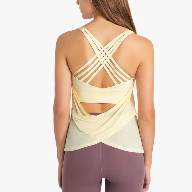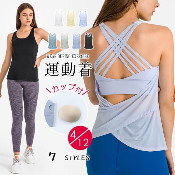 ヨガウェア トップス ブラトップ タンクトップ カップ付 レディース フィットネスウェア ホットヨガ バックデザイン クロス
