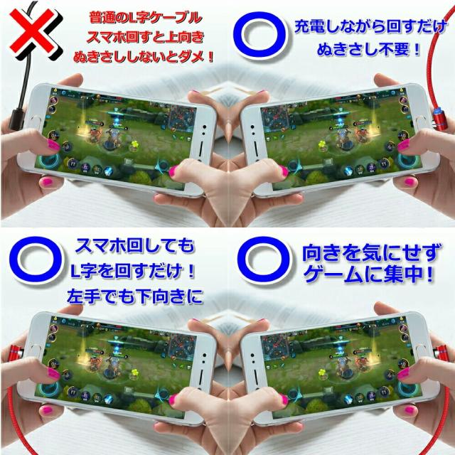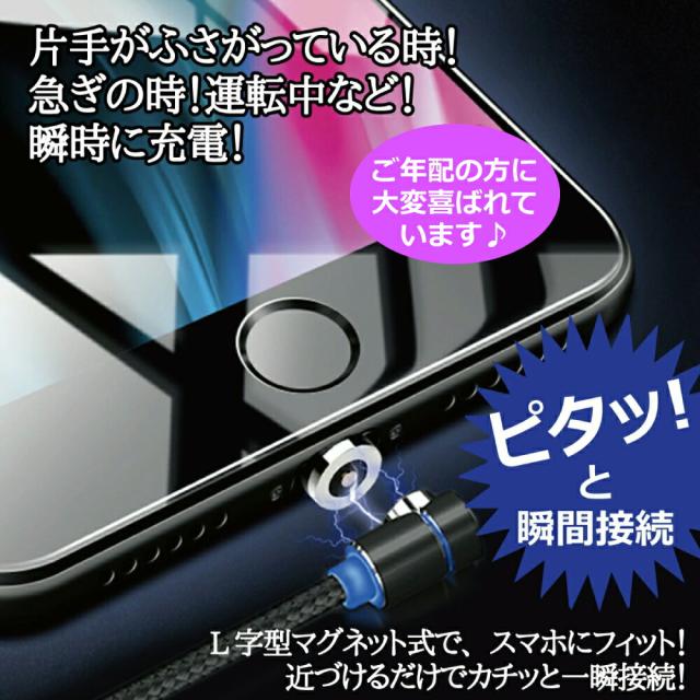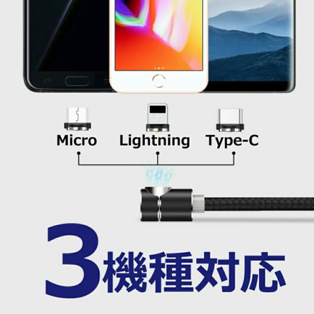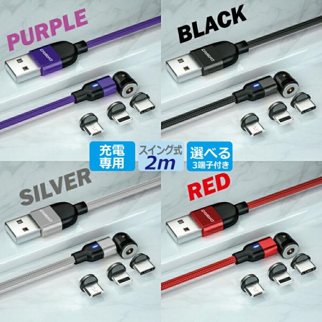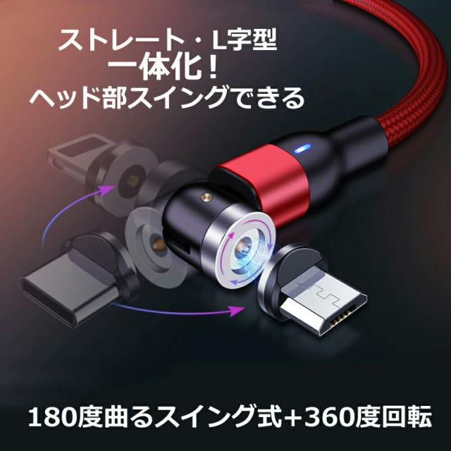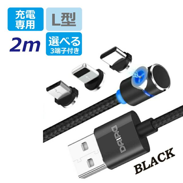 1PIN USB - iPhone17 2m 機種選べる DAIAD マグネット 充電ケーブル 3in1 L型 スマホ USB充電ケーブル 360度回転 540度可動式 Micro USB Type-C Lightning iPhone iPad LED 防塵 磁気 磁石 着脱 首振り VRゴーグル オキュラス Android スマホ タブレット 充電専用 マルチ