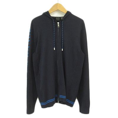 【中古】アルマーニエクスチェンジ A/X ARMANI EXCHANGE パーカー フルジップ ニット ロゴ S 国内正規 紺 メンズ