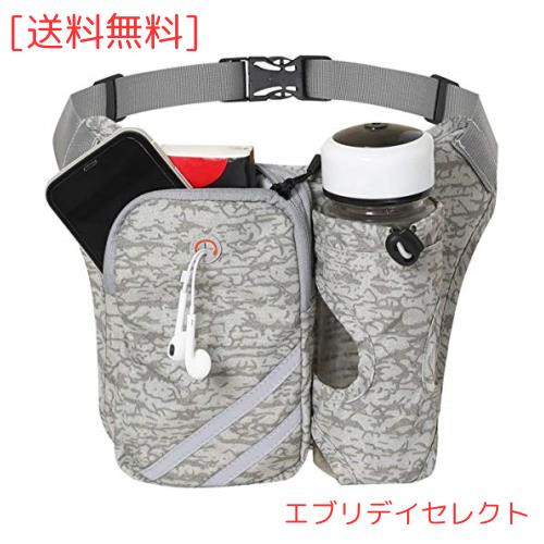 EZIECO ウエストバッグ ペットボトル 揺れない スポーツジョギング ポーチ 軽量/持ち運び用水筒/二層収納/イヤホン穴/長さ調節可能、日本
