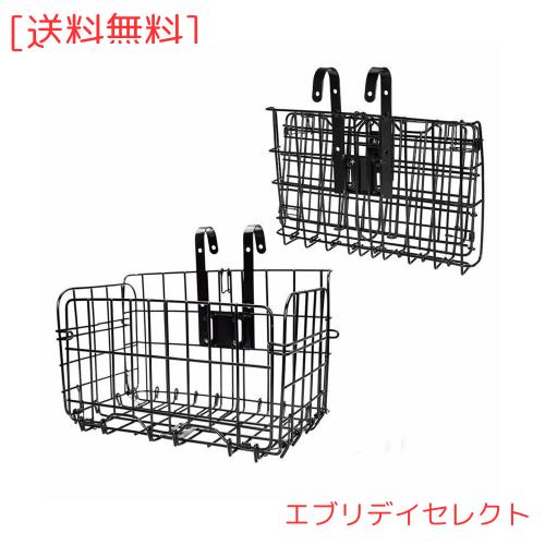 自転車 かご 脱着式 バスケット バイク 後ろかご 前かご 折りたたみ 大容量 取り付け 簡単 耐荷重20KG 山地車 折り畳み車 通勤車等用 (黒