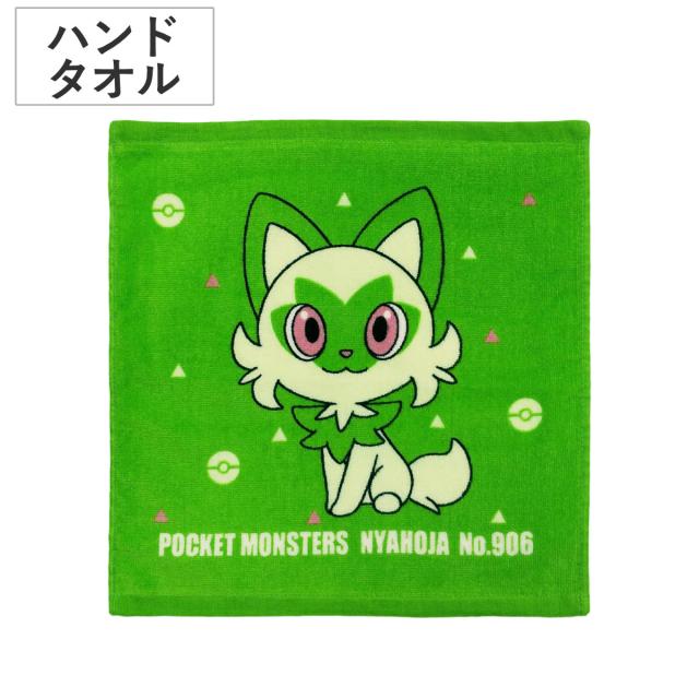 ハンドタオル ポケモン 34×35cm ニャオハ ( タオル 手拭き ハンカチ タオルハンカチ 綿100 吸水 Pokemon ミニハンカチ ウォッシュタオル 34×35 手ふき 手洗い 洗面 キャラクタータオル )