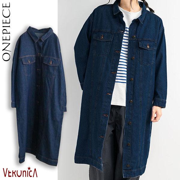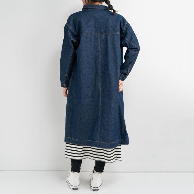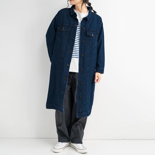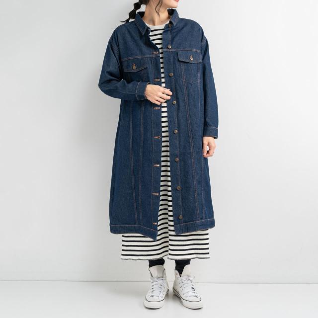 【即納】デニムロングGジャンワンピース 膝下丈 羽織り アウター カジュアル 春夏