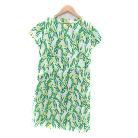 【中古】ドゥクラッセ ワンピース ラウンドネック 半袖 ミモレ丈 総柄 9 オフホワイト 緑 グリーン レディース