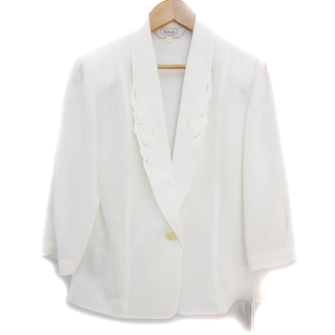 【中古】未使用品 レナウン アデンダ ショールカラージャケット ミドル丈 七分袖 刺繍 シースルー 7 白 レディース