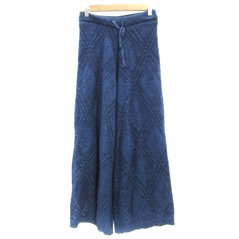 【中古】カスタネ Kastane ニットパンツ ワイドパンツ ロング丈 刺繍 F ネイビー 紺 /YM22 レディース