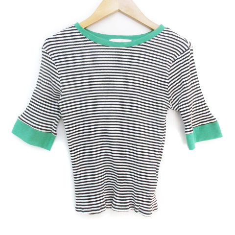 【中古】センスオブプレイス バイ アーバンリサーチ カットソー リブ 五分袖 ボーダー柄 F 白 黒 レディース