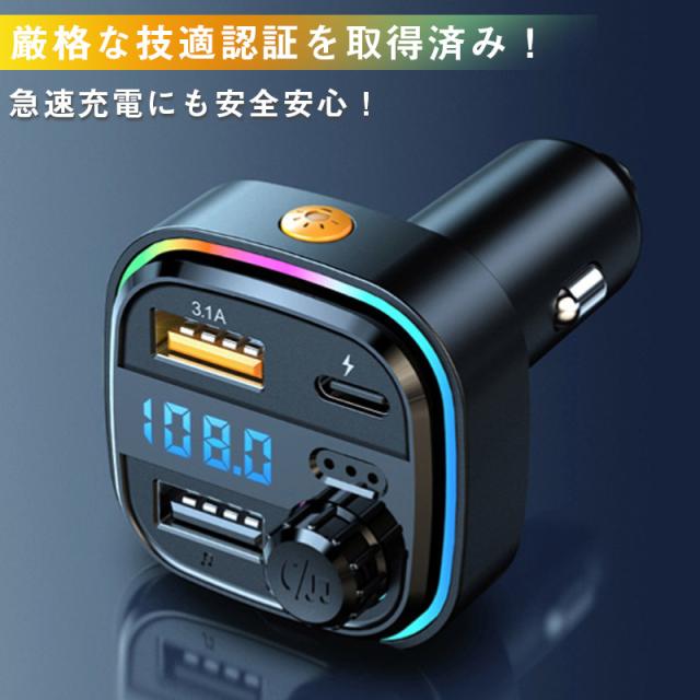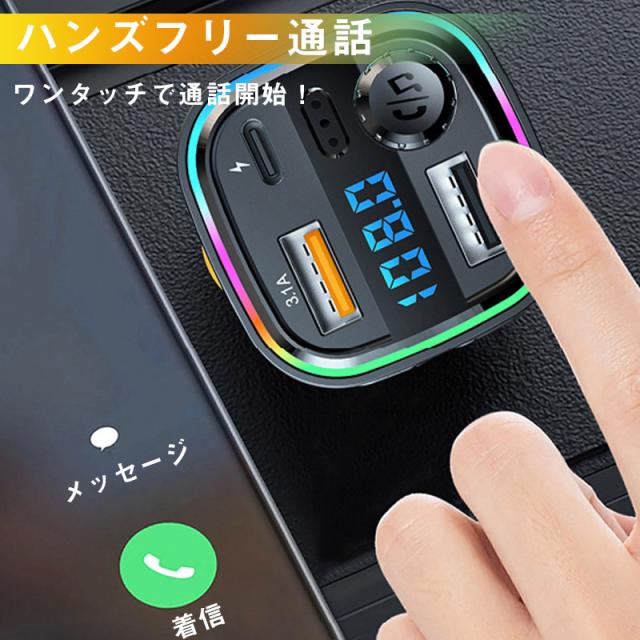 FMトランスミッター Bluetooth 車 シガーソケット アンドロイド 3ポート 急速充電 ハンズフリー通話 usbメモリー 音楽自動再生