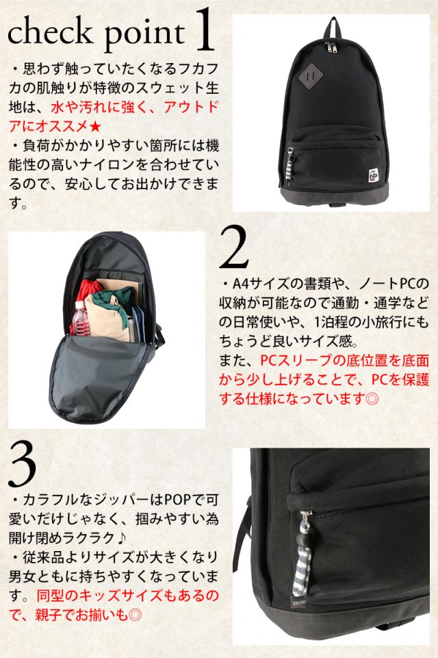 商品:チャムス バッグ リュックサック デイパック CHUMS スウェットナイロン クラシックデイパック 21L A4サイズ CH60-3732 キッズ