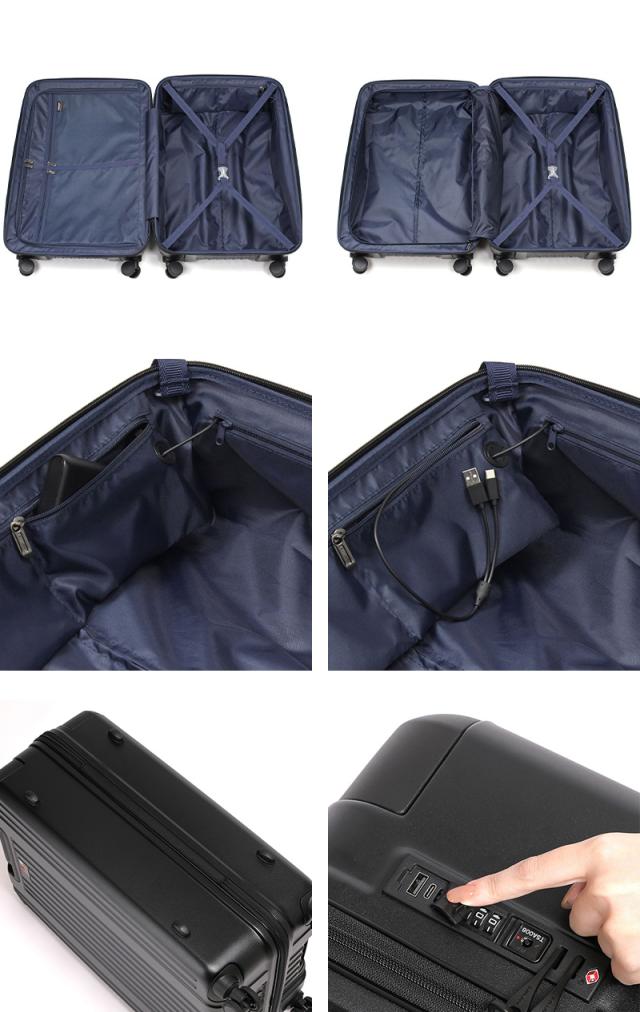 キーワード: 保証付き シンプル 男性 女性 ビジネス 出張 旅行 軽量 ファスナータイプ ブラック ネイビー シルバー グリーン 緑色 黒色 紺色 5泊 6泊 7泊 無料手荷物サイズ 小型 シンプル USBポート TSロック 静音 4輪 学生 ブランド