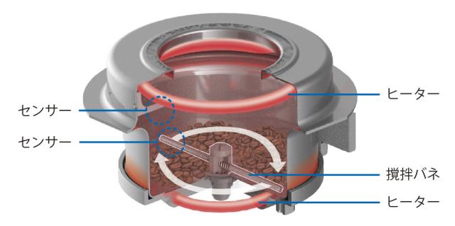 センサーで豆の温度を検知し、最適な温度に制御しているので、電気ヒーター直火式ながら焙煎豆はばらつきが少なく均一に仕上がります。